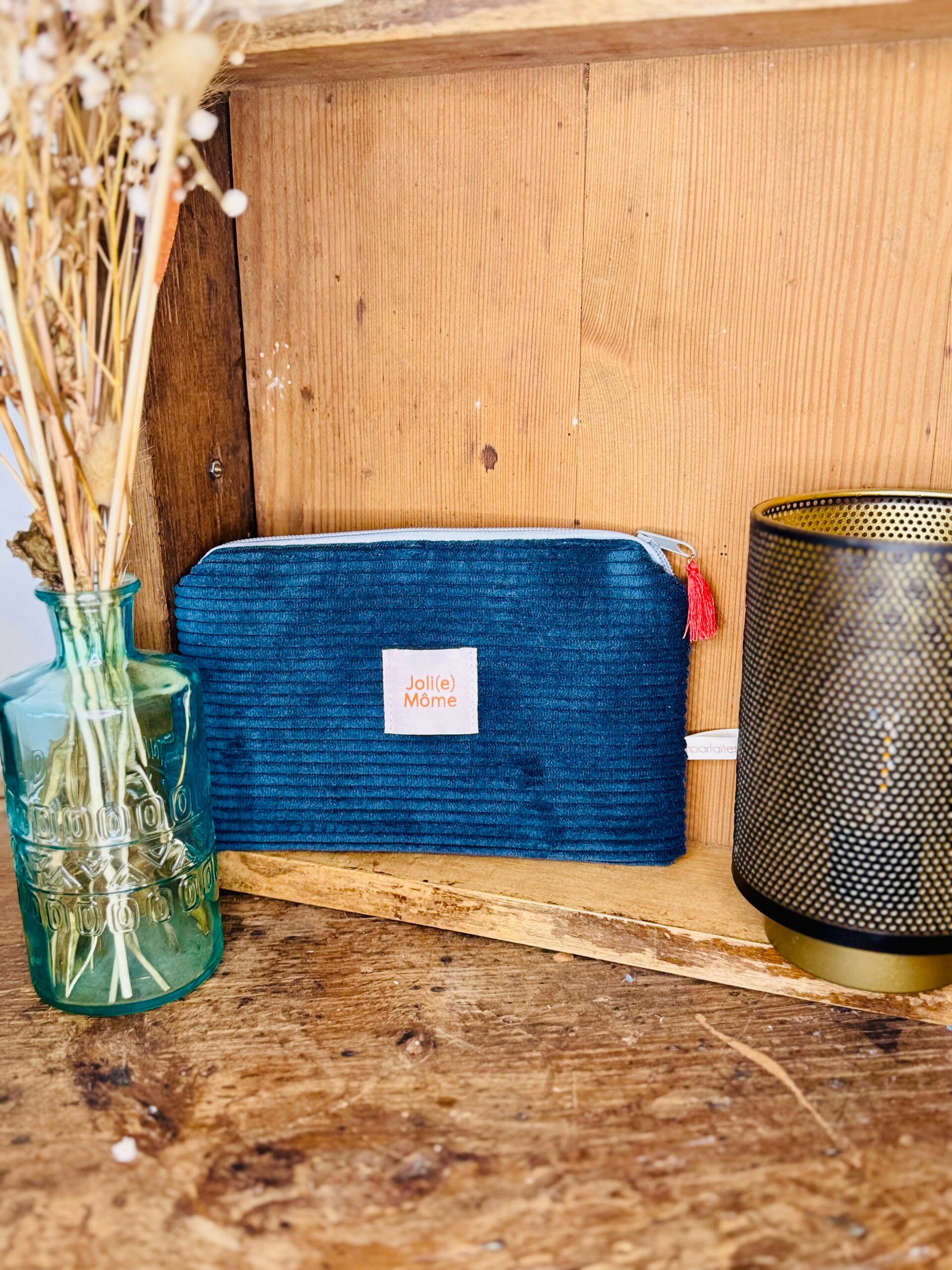Trousse en velours côtelé bleu foncé - Joli(e) Môme