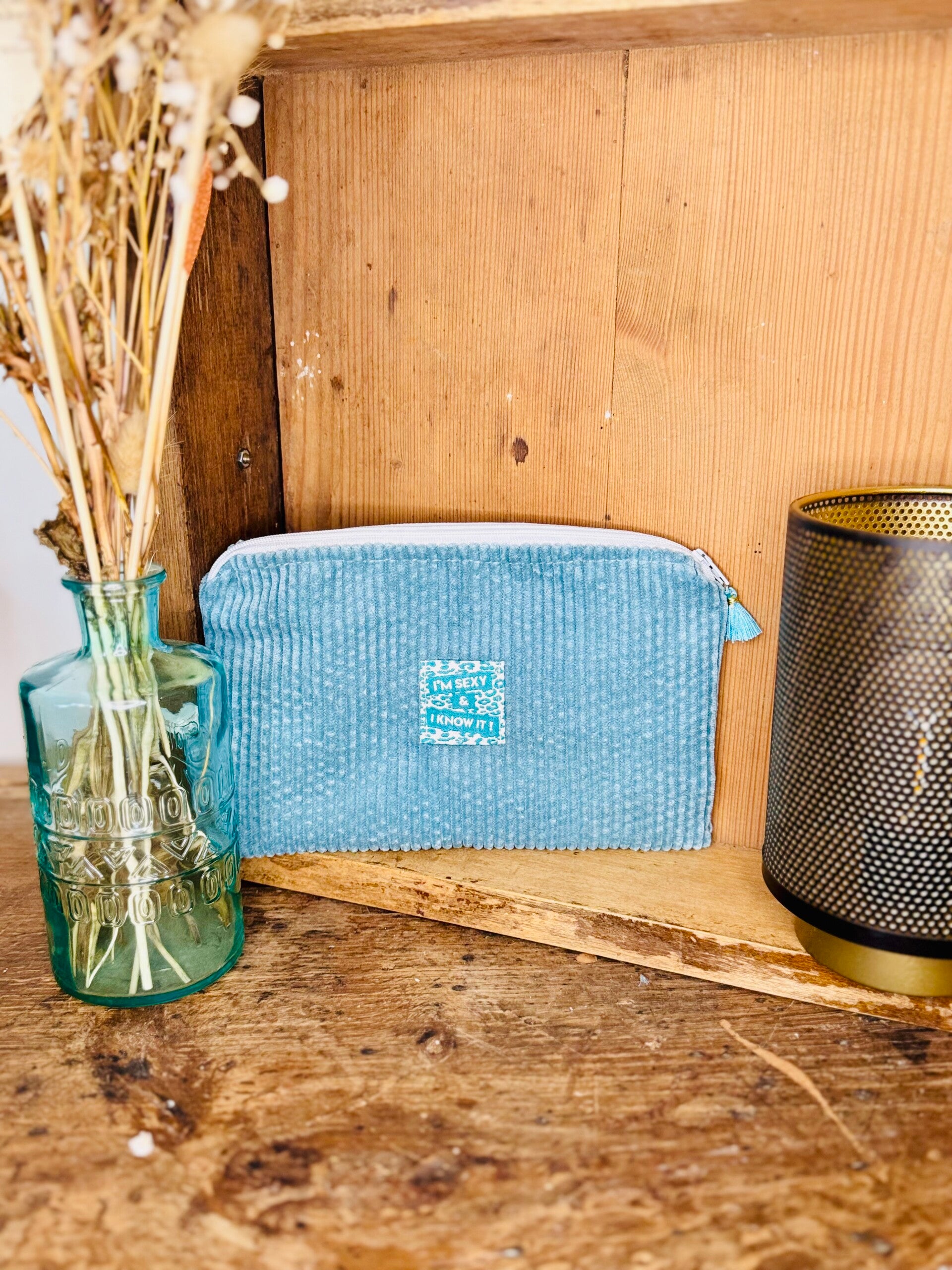 Trousse en velours côtelé bleu - I'm sexy I know it !